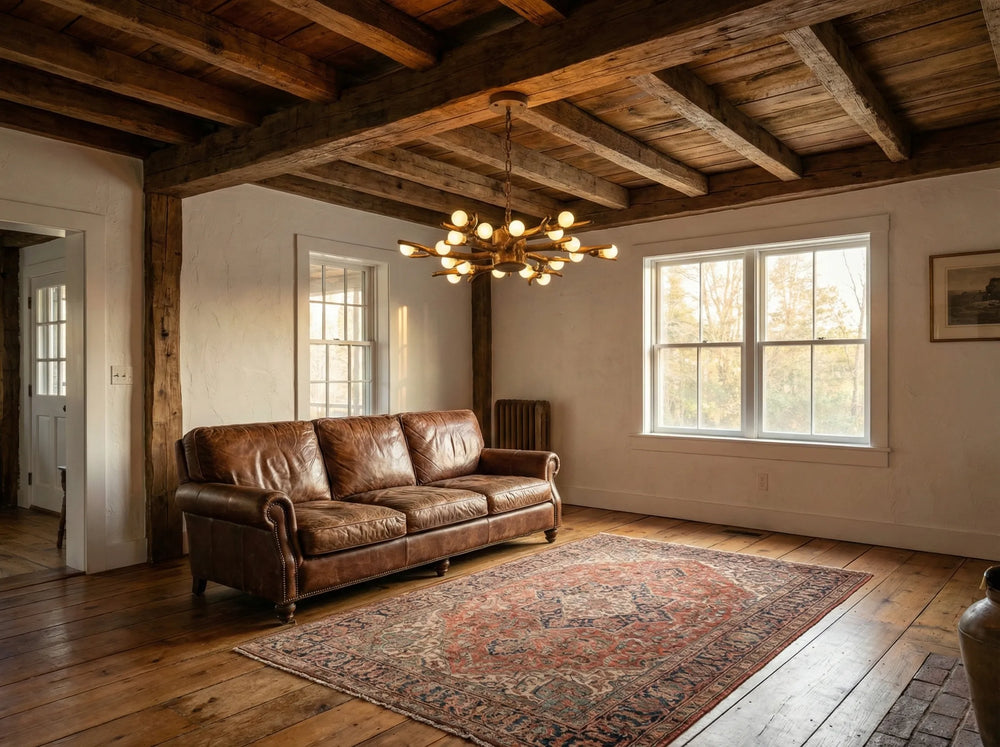 Whether accentuating the exposed beams of a 19th-century farmhouse or adding an earthy touch to a cozy cottage living room, its warm glow creates an inviting atmosphere that feels truly timeless.