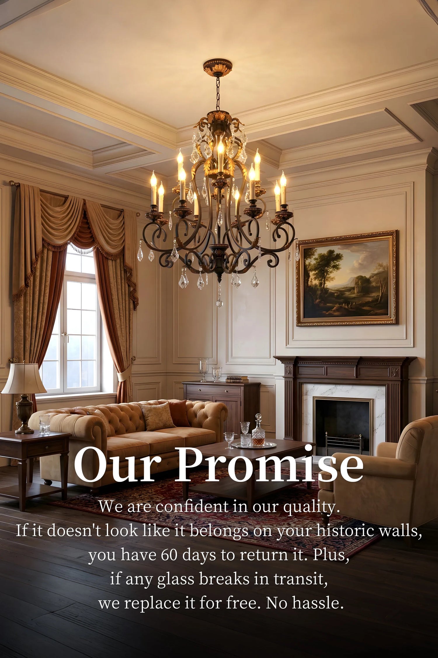 Carefully hook the exquisite K9 crystal drops onto the designated spots on the metal frame. Insert your complimentary dimmable bulbs. Turn the power back on, and instantly transform your space with breathtaking vintage elegance!