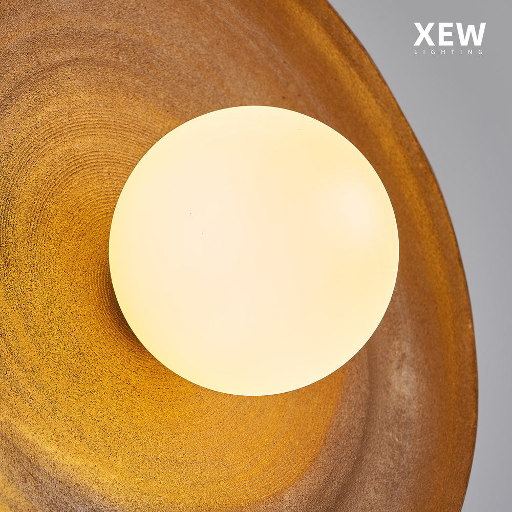 Elevate your space with this stunning gold wall sconce. It's unique, textured metallic disc reflects a warm, inviting glow from the central white glass globe, creating a cozy atmosphere. The modern, minimalist design effortlessly complements various decor styles, making it a perfect addition to your bedroom, living room, or hallway.