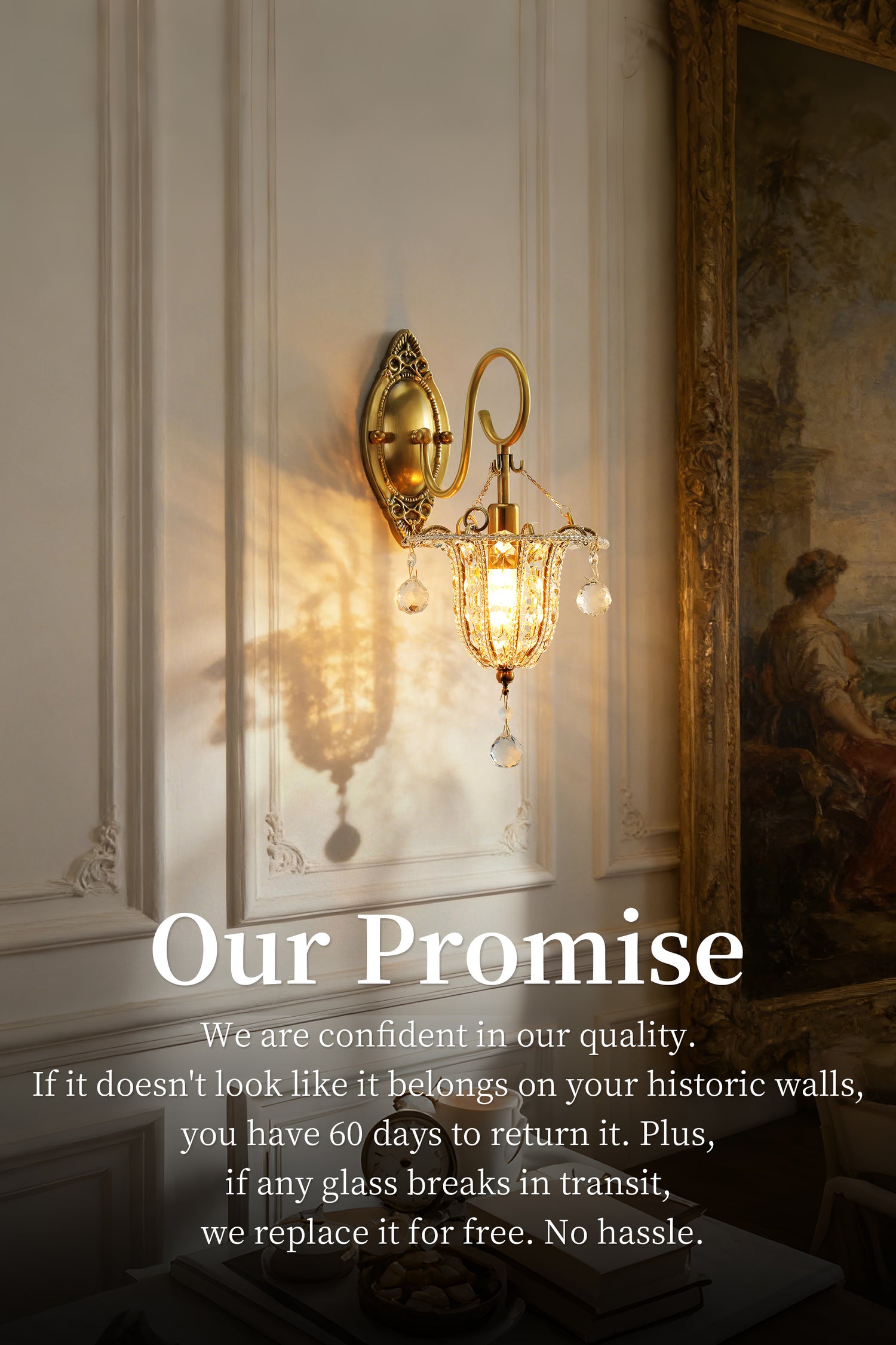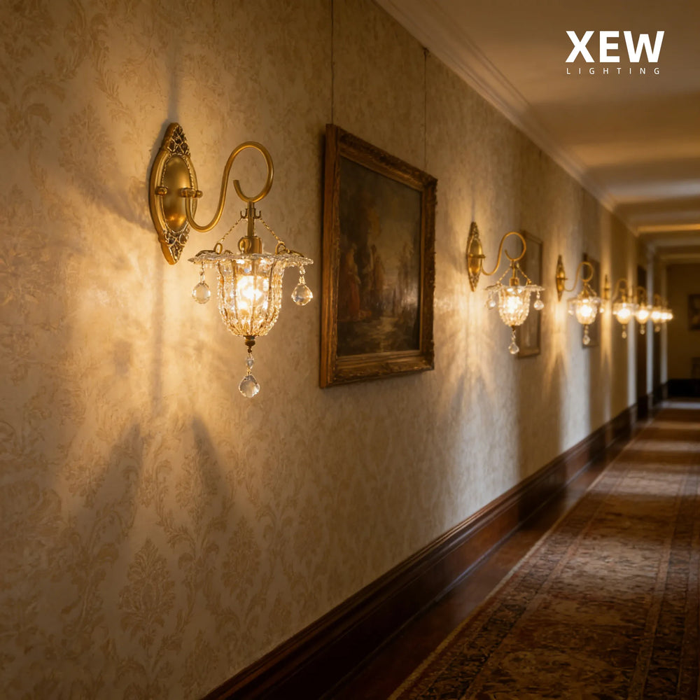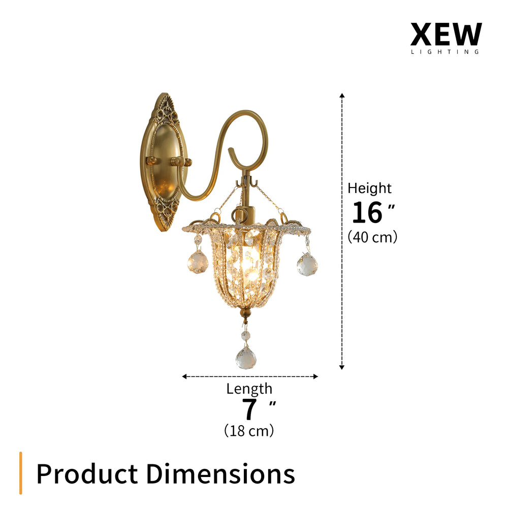 The Royal Crystal Sconce works instantly. Vintage carved brass meets hand-strung crystals to cast a spellbinding, warm glow. No complex decor. No clutter. Just an exquisite atmosphere. Transform any bare wall into a luxurious focal point effortlessly.