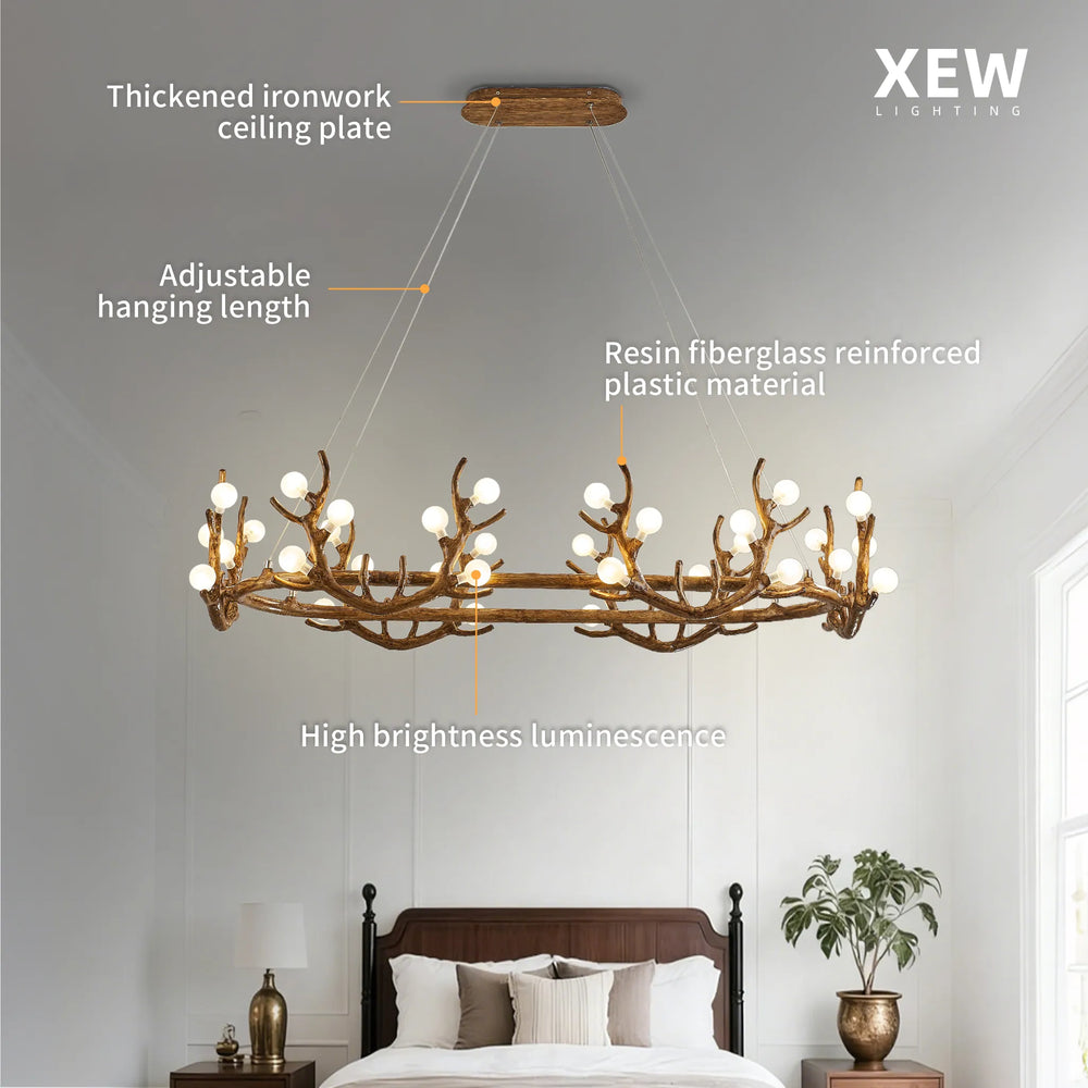Under its light, every gathering feels rooted in nature and elevated by craftsmanship, creating an atmosphere of tranquil sophistication — as if dining beneath the quiet majesty of forest branches at twilight.