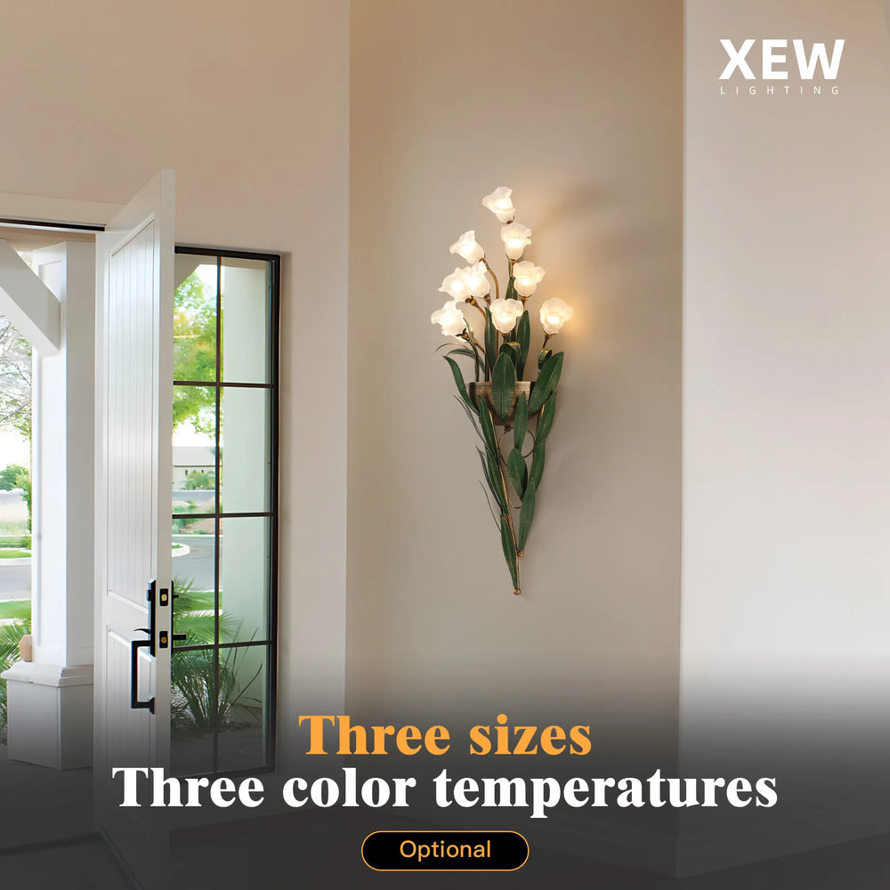 Experience the elegance of the Monet wall light — a sophisticated floral design that brings warmth and charm to any wall in your home. Each handcrafted blossom shade is designed to glow with soft, romantic light, creating a serene ambiance. Finished with lush green leaves and a graceful frame, this piece blends the natural beauty of flowers with a contemporary touch, making it the perfect statement for any modern interior.