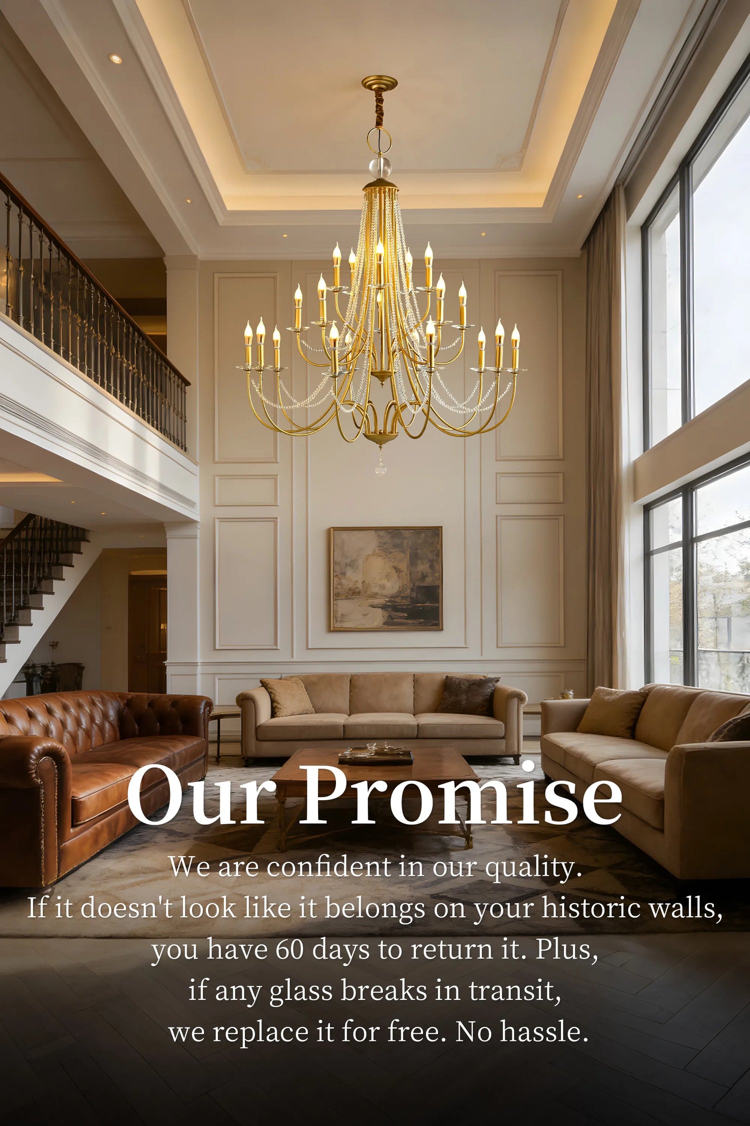 Due to the complexity and weight of this crystal chandelier (especially the large 20-light version), we strongly recommend hiring a licensed electrician to ensure safety and proper support.