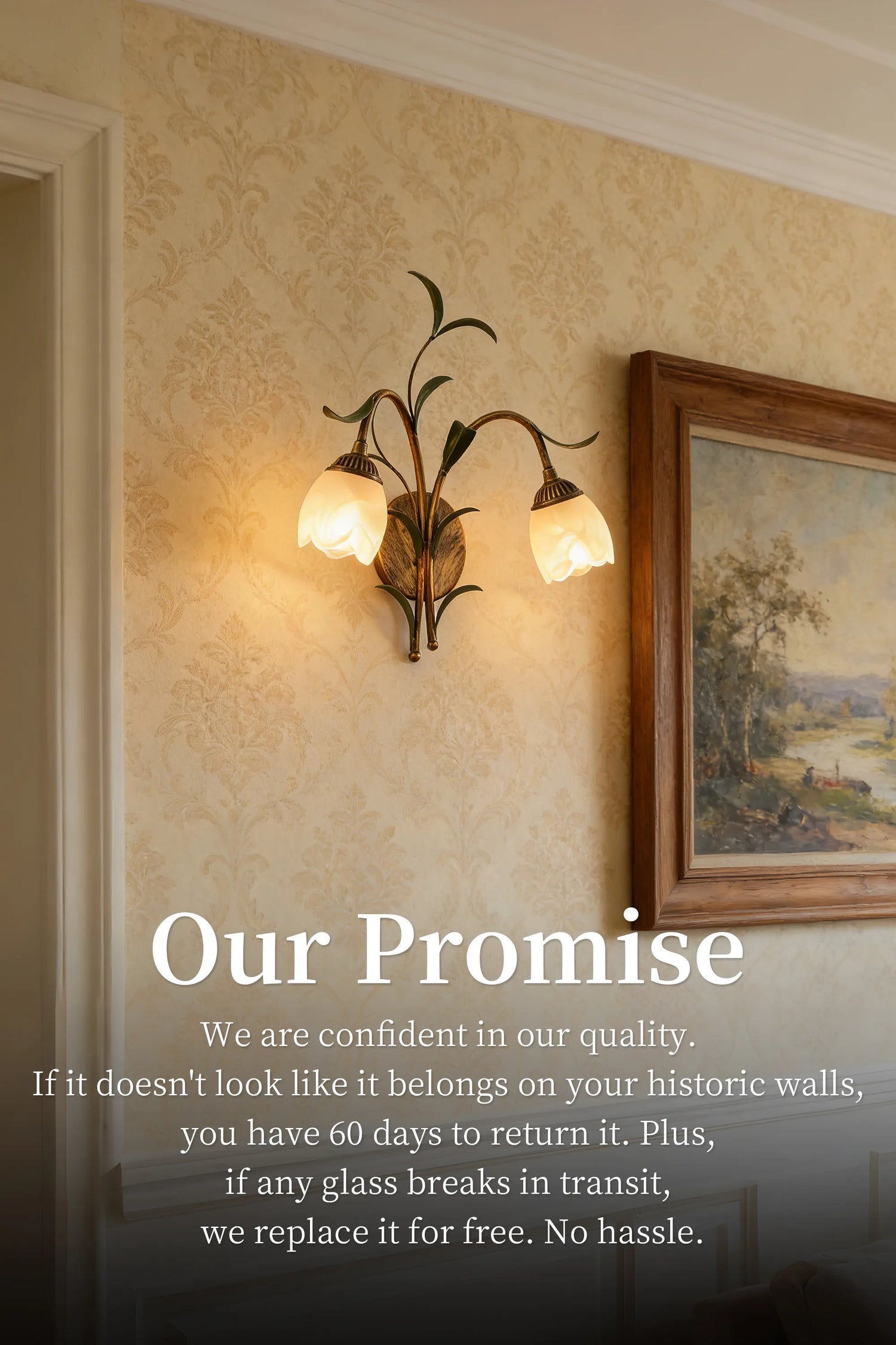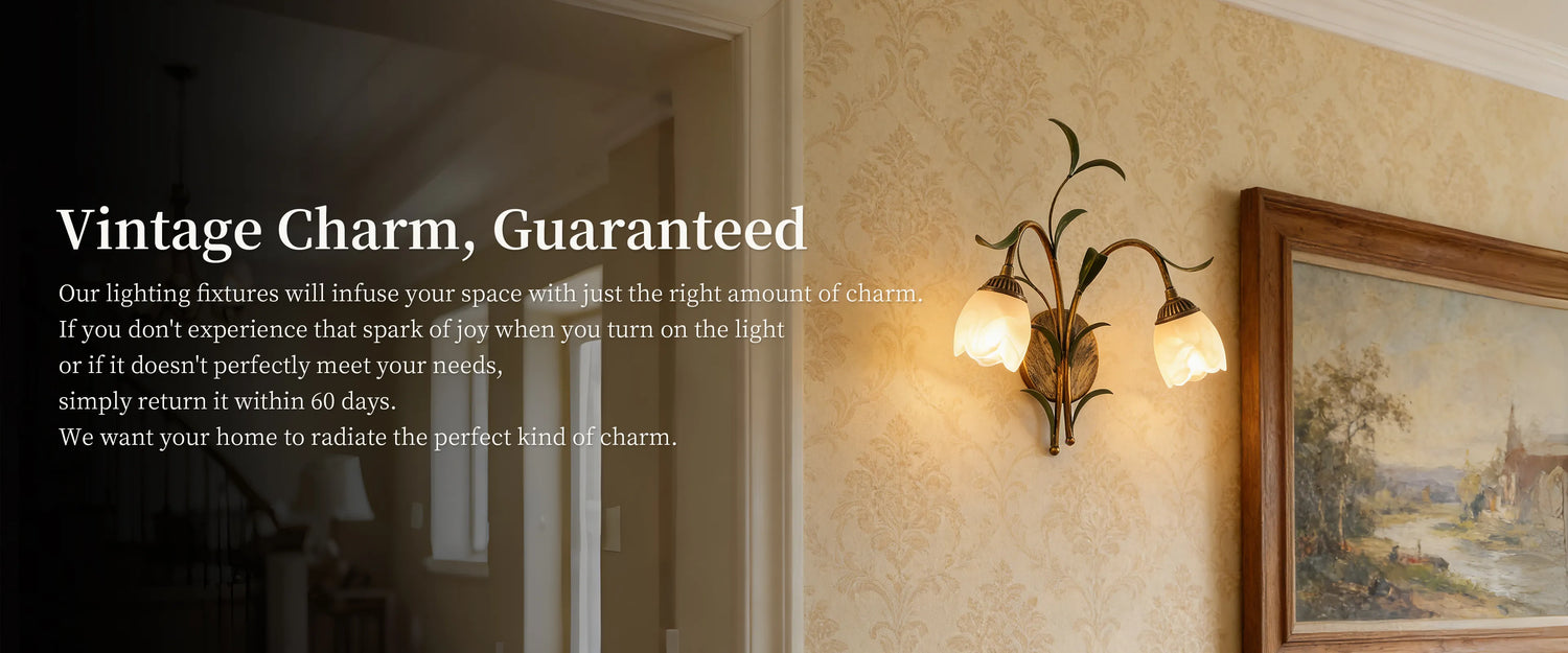Our Botanical Floral Sconce works instantly. One simple installation replaces clinical brightness with a soft, organic glow. No harsh shadows. No sterile feel. Just warm, vintage ambiance—so you can unwind in a space that feels truly like home.