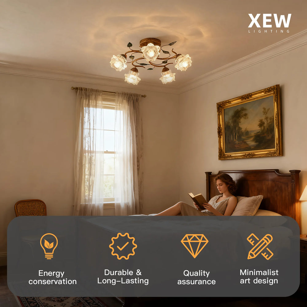 Material: Hand-painted Metal Frame + Textured Glass Shades