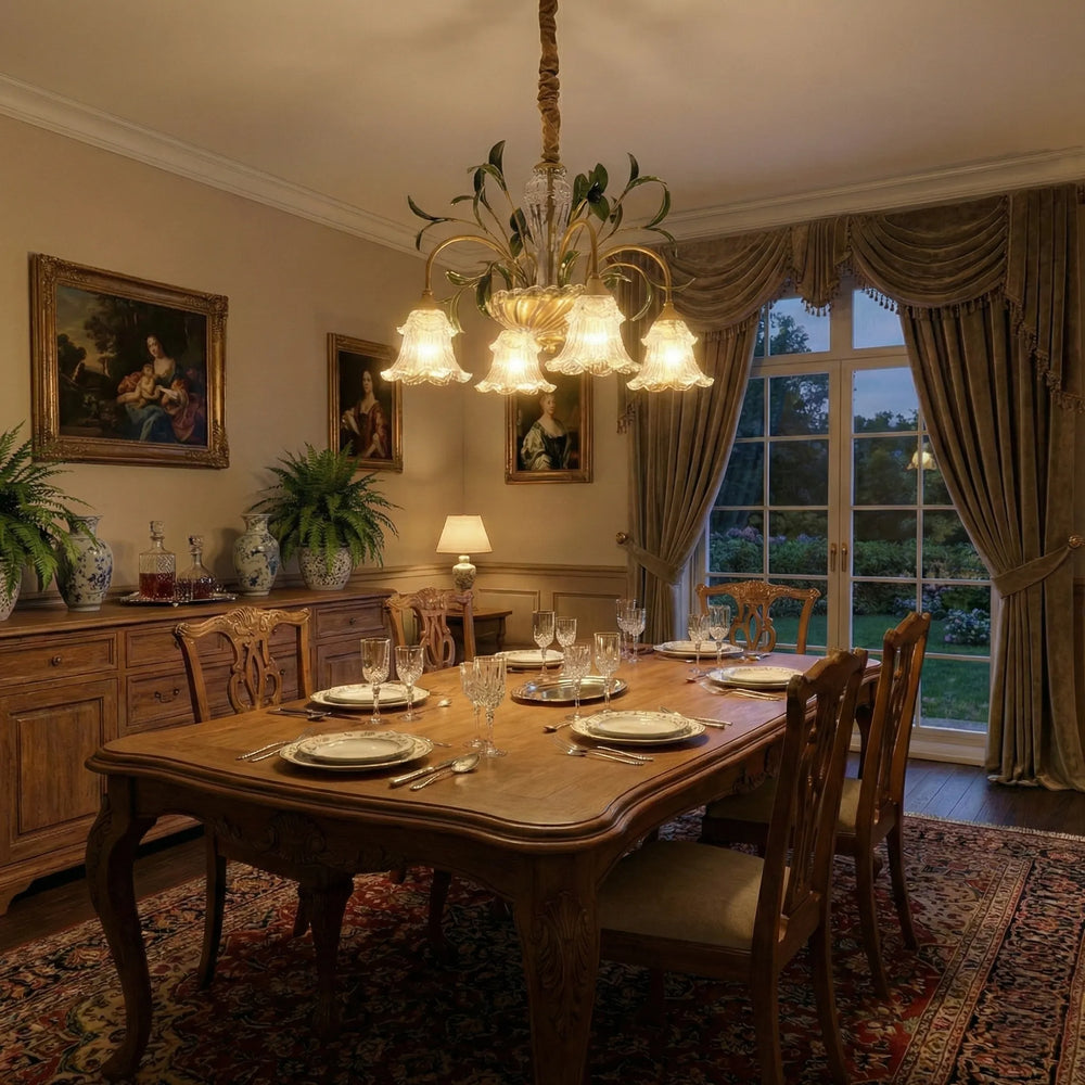 Transform your space with Victorian elegance. With hand-crafted glass flowers and vintage brass vines, it instantly turns that empty void into a warm, luxurious sanctuary.