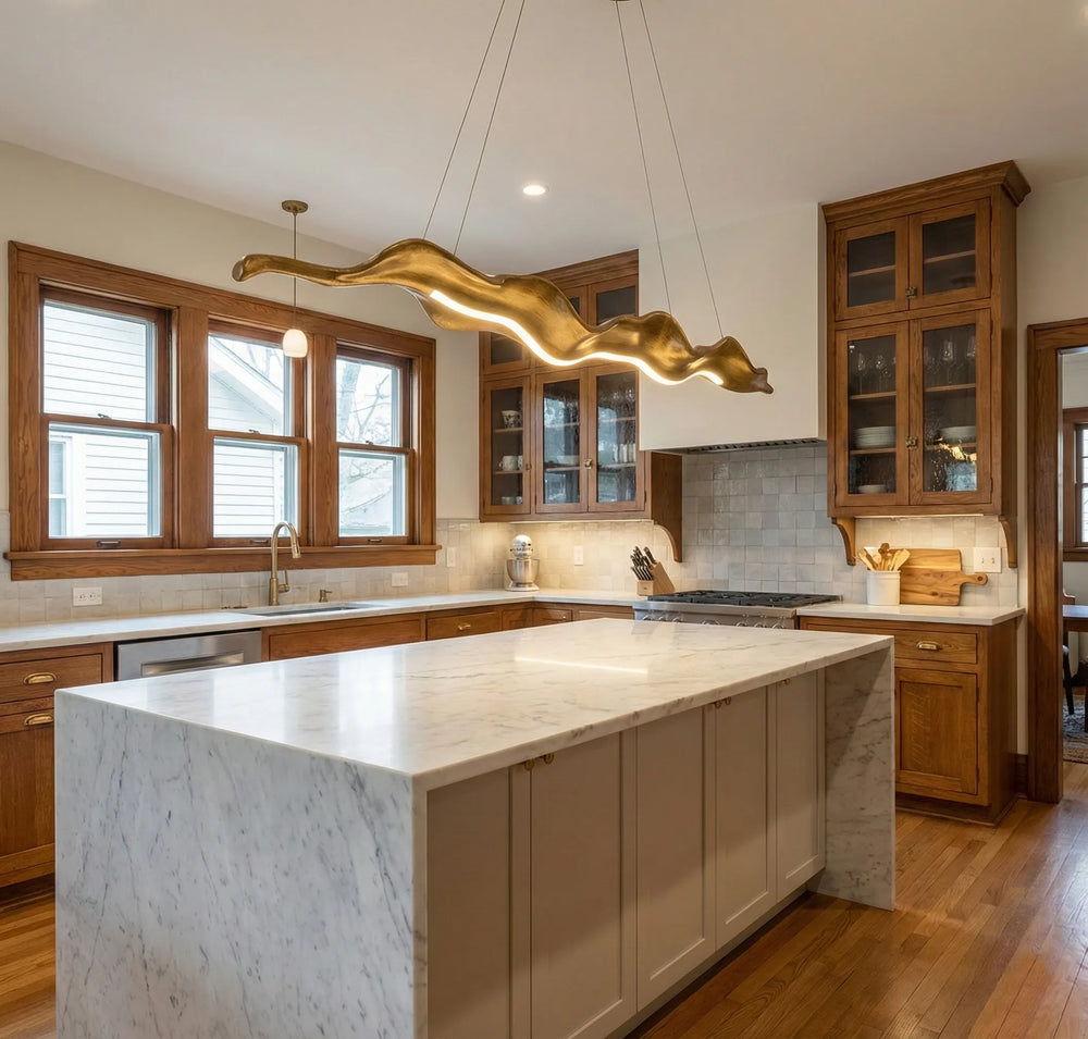 The 63” Wave Pendant transforms the room instantly. Its fluid, organic shape brings movement to static spaces, while the rich wood grain honors traditional craftsmanship. No harsh glare. No mismatch. Just sculptural, warm radiance—so you can elevate your dining experience with a timeless, artistic statement.