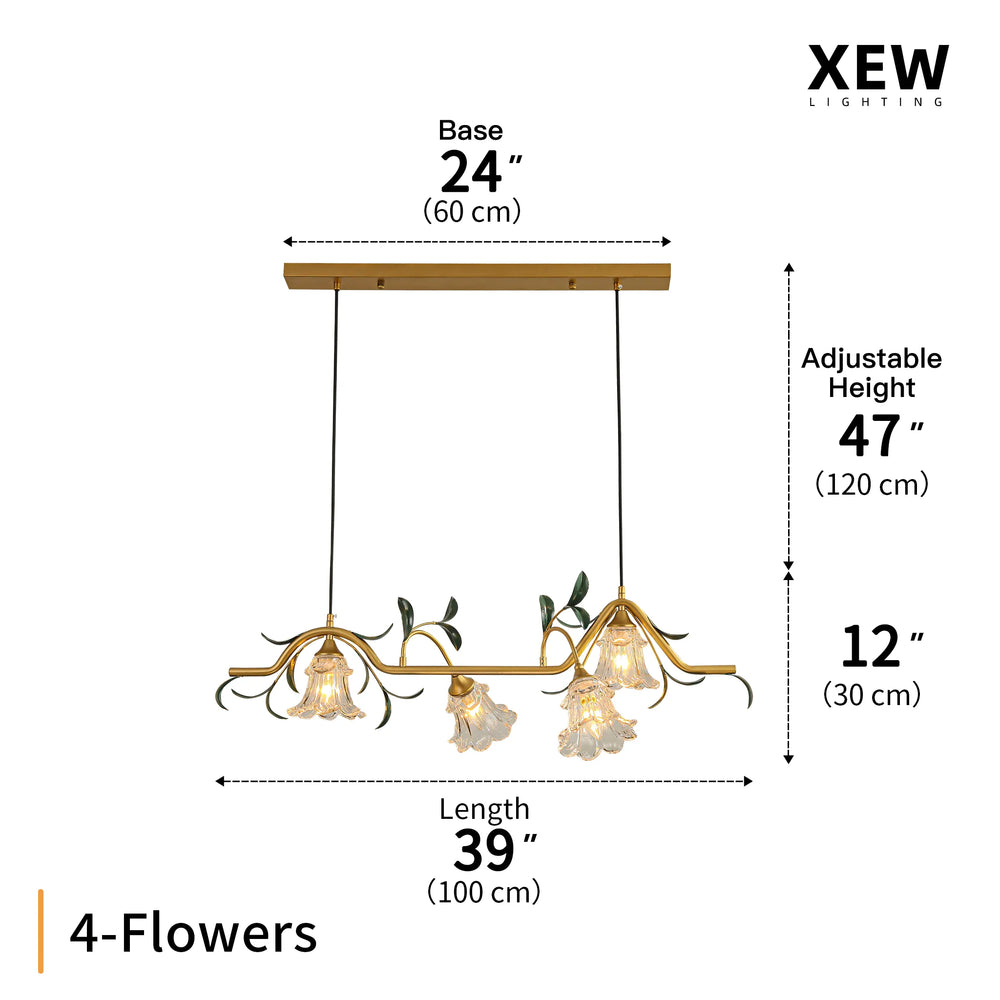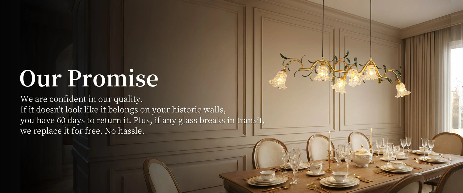 This fixture features delicate glass flower shades. While the metal vine structure is sturdy, please handle the glass parts with extreme care during assembly to avoid breakage. Do not overtighten screws against the glass.